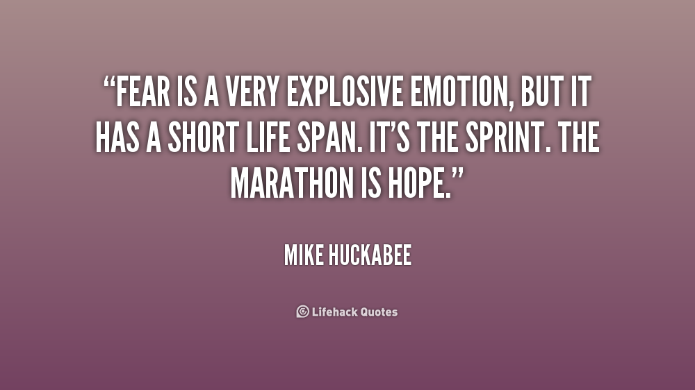 Fear is a very explosive emotion, but it has a short life span. It's the sprint. The marathon is hope.