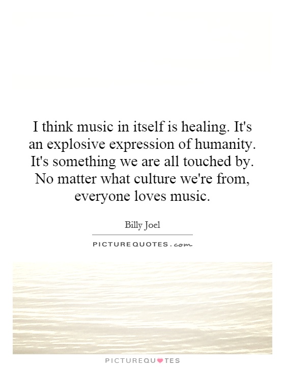 I think music in itself is healing. It's an explosive expression of humanity. It's something we are all touched by. No matter what culture we're from, everyone loves music.