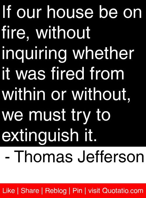 It is our duty still to endeavor to avoid war; but if it shall actually take place, no matter by whom brought on, we must defend ourselves. If our house be on fire, without inquiring whether it was fired from within or without, we must try to extinguish it.