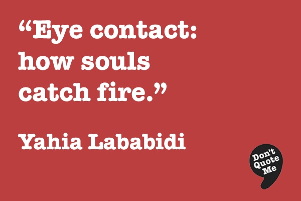 I have a big thing with eye contact, because I think as soon as you make eye contact with somebody, you see them, and they become valued and worthy.