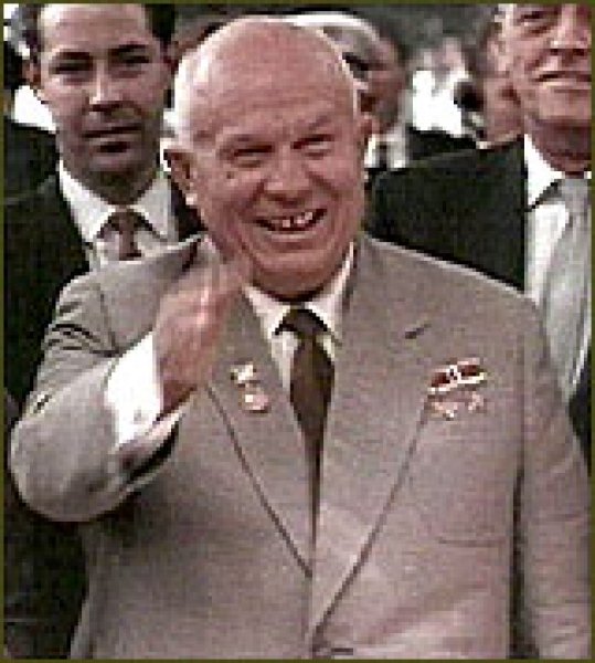 Nikita Sergeyevich Khrushchev was a Russian politician who led the Soviet Union during part of the Cold War. He served as First Secretary of the Communist Party of the Soviet Union from 1953 to 1964, and as Chairman of the Council of Ministers, or Premier, from 1958 to 1964. Khrushchev was responsible for the de-Stalinization of the Soviet Union, for backing the progress of the early Soviet space program, and for several relatively liberal reforms in areas of domestic policy. Khrushchev's party colleagues removed him from power in 1964, replacing him with Leonid Brezhnev as First Secretary and Alexei Kosygin as Premier... (wikipedia)