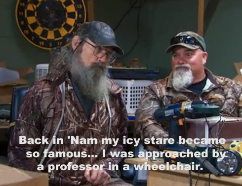 Silas Merritt Robertson, known as Si Robertson and often referred to as "Uncle Si", is an American television personality, preacher, hunter, outdoorsman, retired U.S. Army soldier, and duck-call maker at Duck Commander. He is best known for his role on A&E's Duck Dynasty, on which he has emerged as the breakout character. He has also appeared on other shows such as the Outdoor Channel's Buck Commander and The Duckmen of Louisiana... (wikipedia)