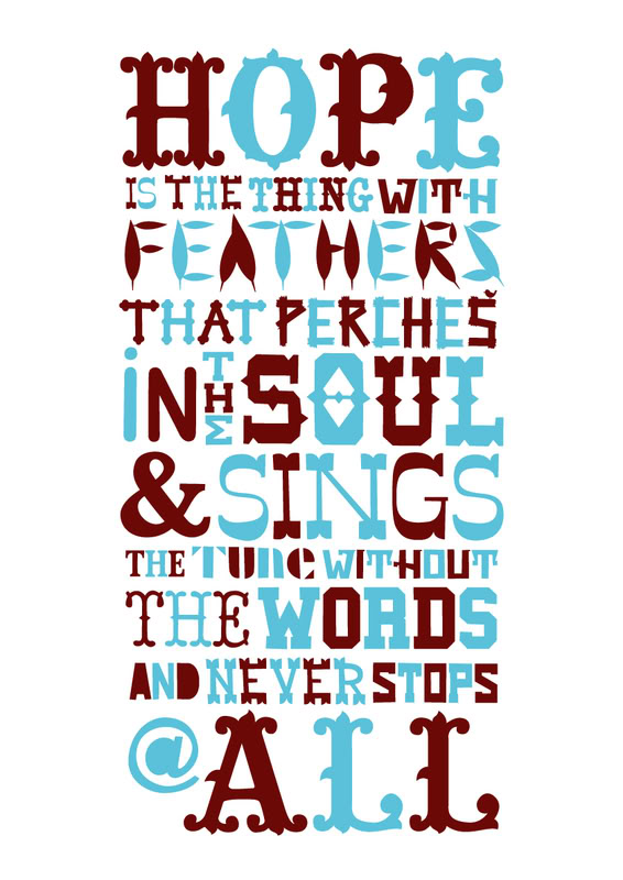 Hope is the thing with feathers that perches in the soul - and sings the tunes without the words - and never stops at all.