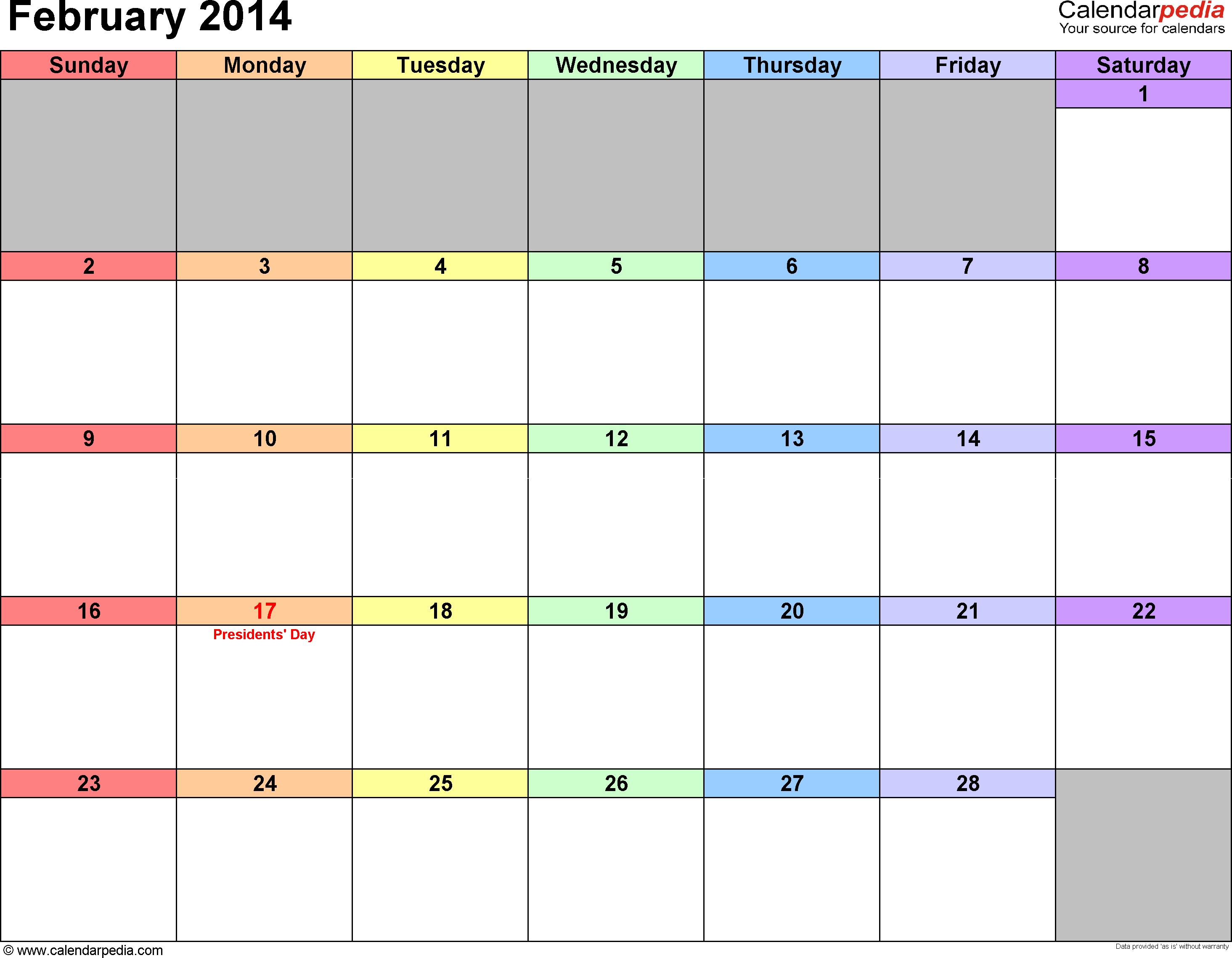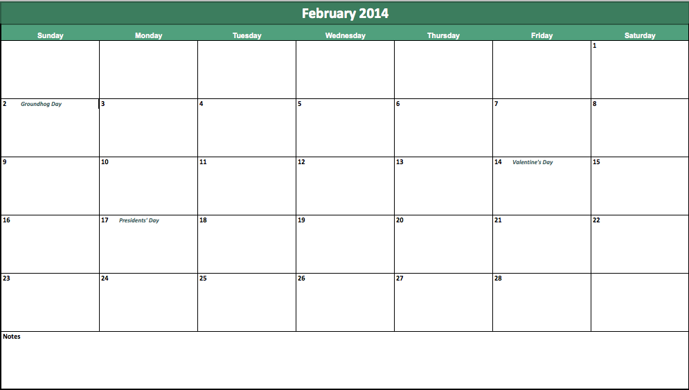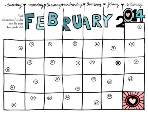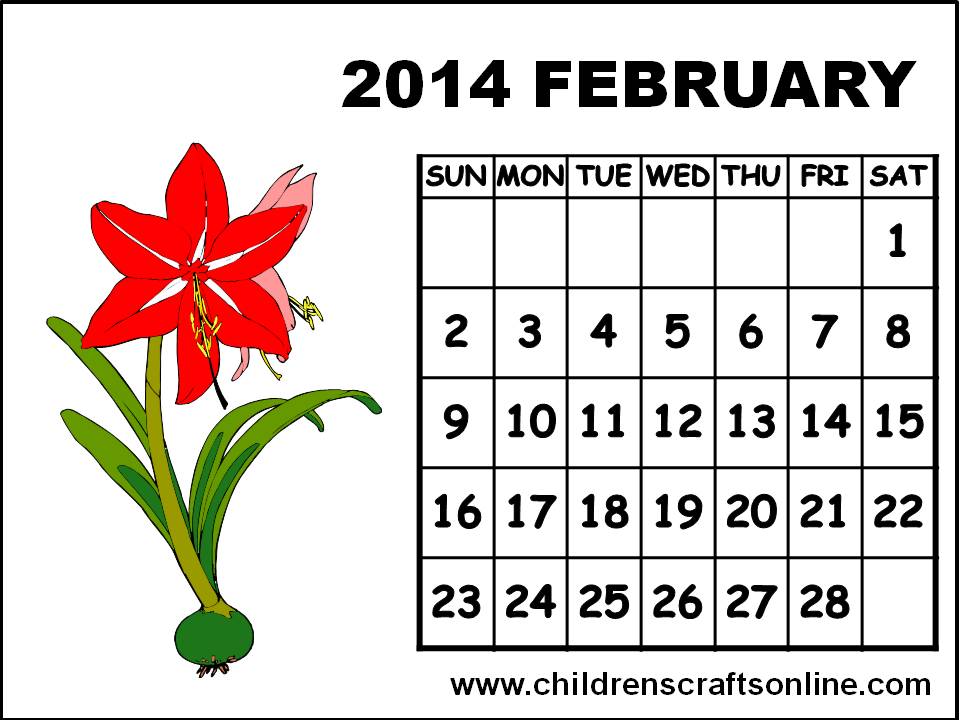 Feb 2014 Monthly Calendar With Quotes