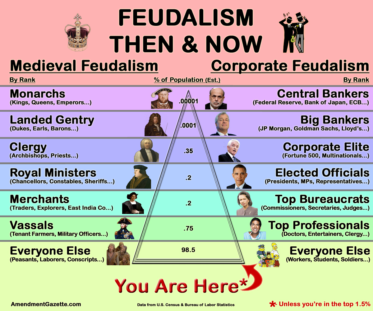 Corporations are like countries now, there's a king, there are serfs, there's a court, basically everything but moats. They're feudal societies, and there are good ones and bad ones.