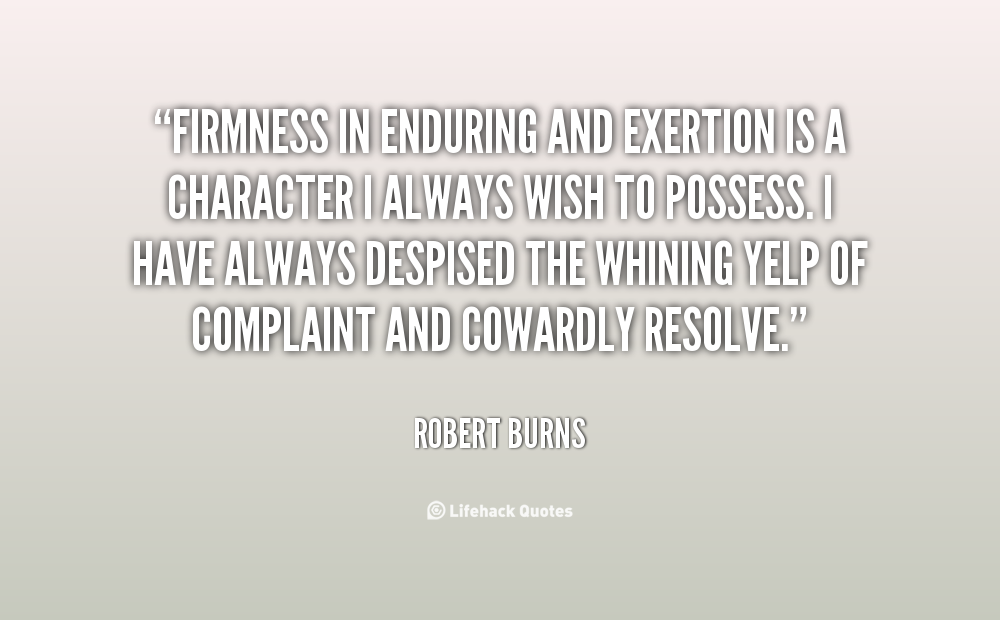 Firmness in enduring and exertion is a character I always wish to possess. I have always despised the whining yelp of complaint and cowardly resolve.