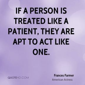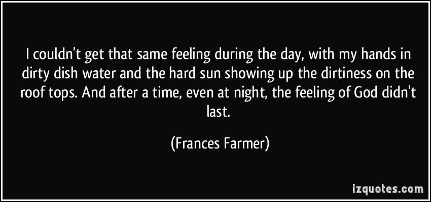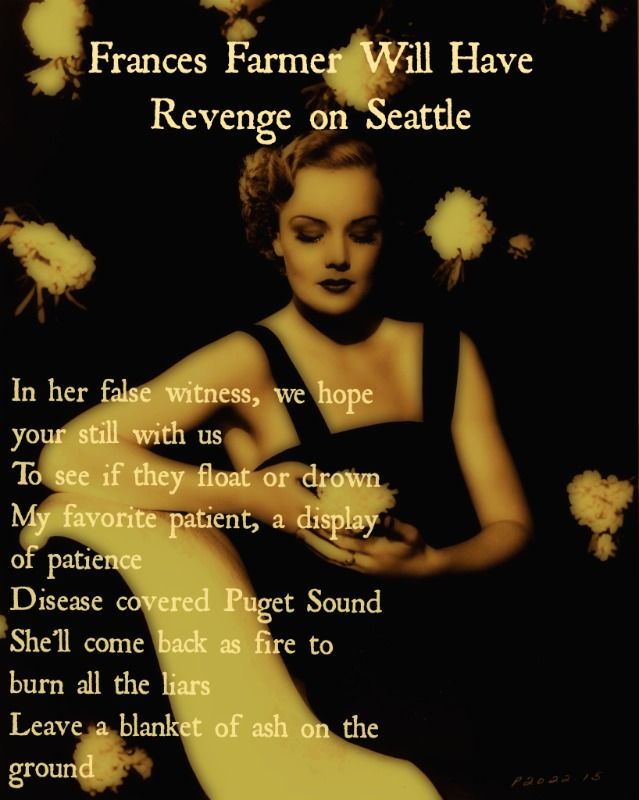 Frances Elena Farmer was an American actress and television host. She is perhaps better known for sensationalized accounts of her life, especially her involuntary commitment to a mental hospital. Farmer was the subject of two films, one television special, three books, and numerous songs and magazine articles... (wikipedia)