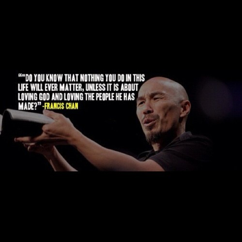 Francis Chan is a preacher in America. He is the former teaching pastor of Cornerstone Community Church in Simi Valley, CA, a church he and his wife started in 1994. He is also the Founder and Chancellor of Eternity Bible College and author of the best-selling books, Crazy Love: Overwhelmed by a Relentless God, which came out in 2009. and most recently, You and Me Forever: Marriage In Light of Eternity, which came out in 2014. He released his second book Forgotten God: Reversing Our Tragic Neglect of the Holy Spirit in August 2009. His other works include Erasing Hell in 2011, Multiply: Disciples Making Disciples in 2012, and the Basic Series by Francis Chan, a DVD series started in 2010. He also sits on the board of directors of Children’s Hunger Fund and World Impact... (wikipedia)