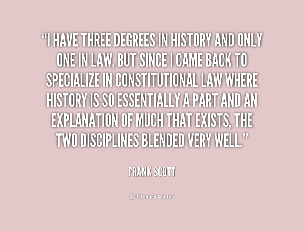 I have three degrees in history and only one in law, but since I came back to specialize in constitutional law where history is so essentially a part and an explanation of much that exists, the two disciplines blended very well.