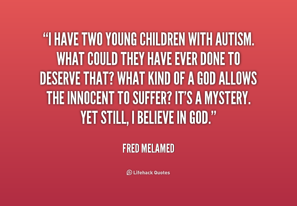 I have two young children with autism. What could they have ever done to deserve that? What kind of a God allows the innocent to suffer? It's a mystery. Yet still, I believe in God.