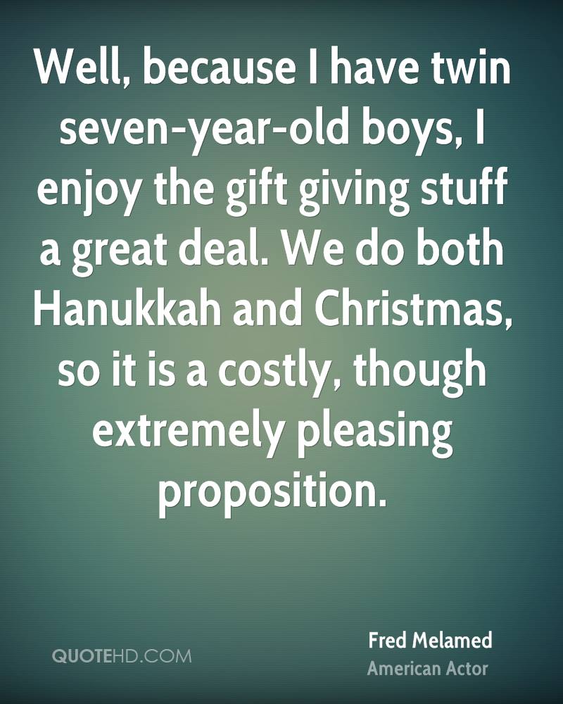Well, because I have twin seven-year-old boys, I enjoy the gift giving stuff a great deal. We do both Hanukkah and Christmas, so it is a costly, though extremely pleasing proposition.