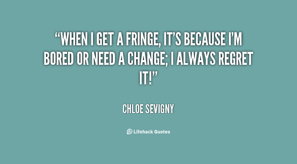 A moustache to a man is the same as a fringe is to a woman. When you've got it, you want to grow it out; when you've grown it out, you want to cut it.
