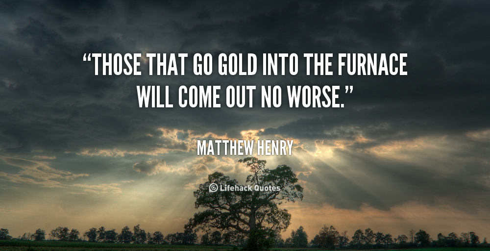 For gold is tried in the fire and acceptable men in the furnace of adversity.
