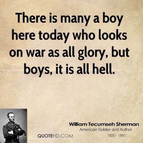 William Tecumseh Sherman was an American soldier, businessman, educator and author. He served as a General in the Union Army during the American Civil War, for which he received recognition for his outstanding command of military strategy as well as criticism for the harshness of the "scorched earth" policies that he implemented in conducting total war against the Confederate States... (wikipedia)