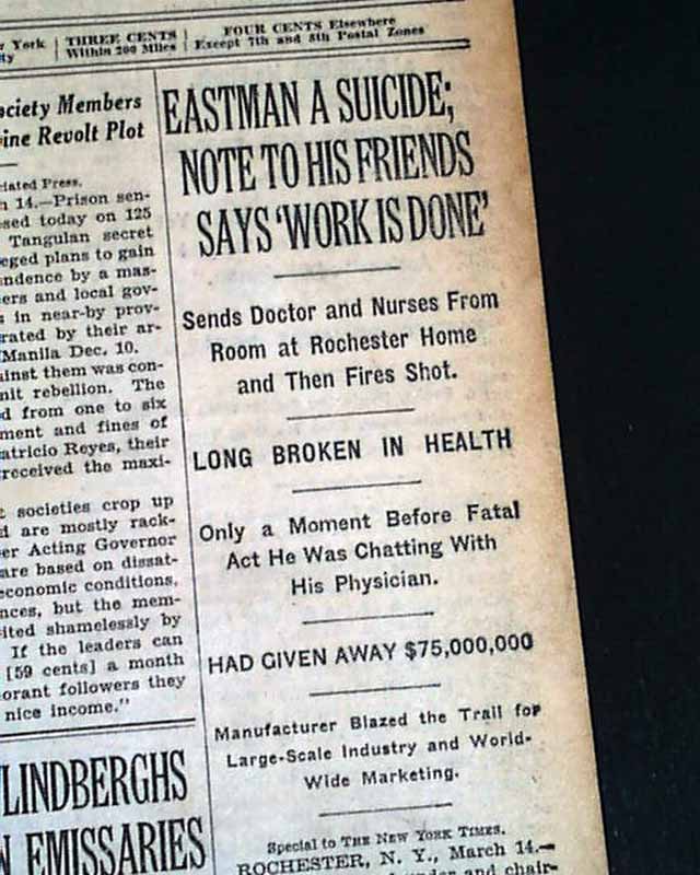 George Eastman — American Inventor born on July 12, 1854, died on March 14, 1932