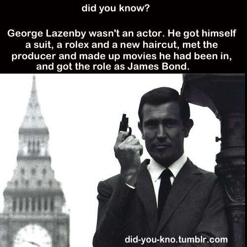 George Robert Lazenby /ˈleɪzənbi/ is an Australian actor and former model, best known for portraying James Bond in the 1969 film On Her Majesty's Secret Service when he was 29... (wikipedia)