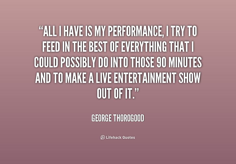 All I have is my performance, I try to feed in the best of everything that I could possibly do into those 90 minutes and to make a live entertainment show out of it.