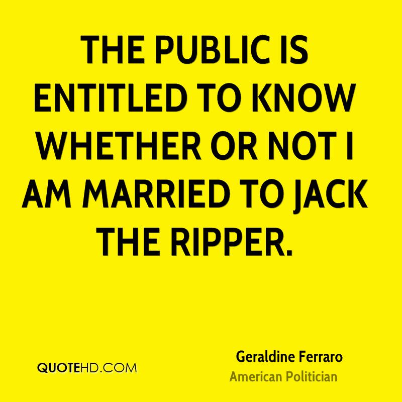 Geraldine Anne Ferraro was an American attorney, a Democratic Party politician, and a member of the United States House of Representatives. She was the first female vice presidential candidate representing a major American political party... (wikipedia)