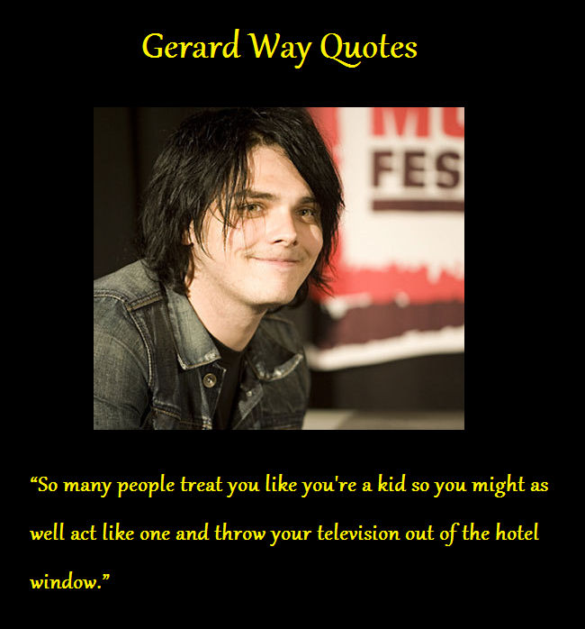 Gerard Arthur Way is an American musician and comic book writer who was the lead vocalist and co-founder of the American alternative rock band My Chemical Romance from its formation in September 2001 until its split in March 2013. He is the executive producer of the band LostAlone's second album I'm a UFO in This City. Way also wrote the comic mini-series The True Lives of the Fabulous Killjoys, and wrote the Eisner Award-winning comic book The Umbrella Academy. His debut solo album Hesitant Alien was released on September 30, 2014 via Warner Bros. Records... (wikipedia)