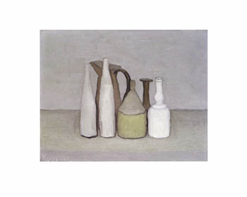 Giorgio Morandi was an Italian painter and printmaker who specialized in still life. His paintings are noted for their tonal subtlety in depicting apparently simple subjects, which were limited mainly to vases, bottles, bowls, flowers and landscapes... (wikipedia)