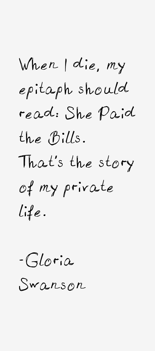 Gloria May Josephine Swanson was an American actress, singer, and producer best known for her role as Norma Desmond, a reclusive silent film star, in the critically acclaimed 1950 film Sunset Boulevard. She was also a star in the silent film era as both an actress and a fashion icon, especially under the direction of Cecil B. DeMille. She starred in dozens of silent films and was nominated for the first Academy Award in the Best Actress category. She also produced her own films, including Sadie Thompson and The Love of Sunya. In 1929, Swanson transitioned to talkies with The Trespasser. Personal problems and changing tastes saw her popularity wane during the 1930s when she moved into theater and television... (wikipedia)