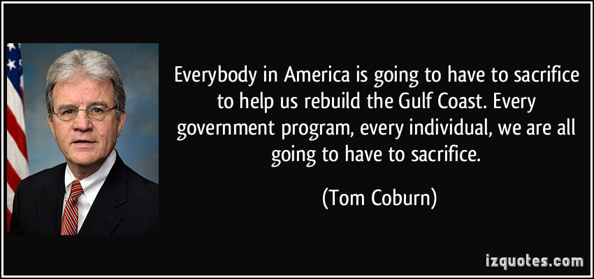 Everybody in America is going to have to sacrifice to help us rebuild the Gulf Coast. Every government program, every individual, we are all going to have to sacrifice.