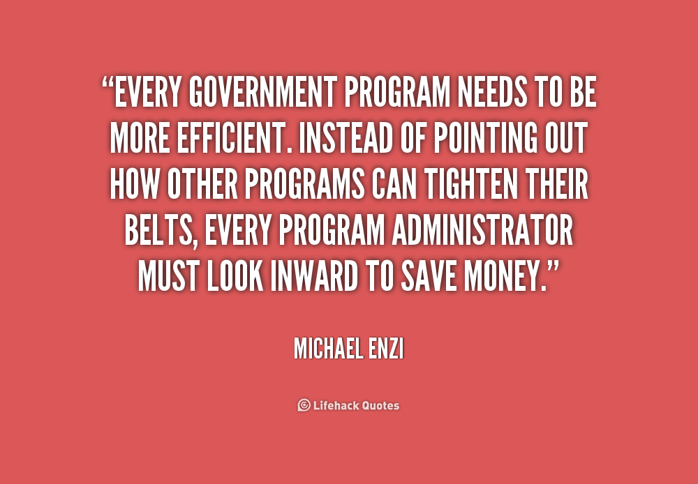 Every government program needs to be more efficient. Instead of pointing out how other programs can tighten their belts, every program administrator must look inward to save money.