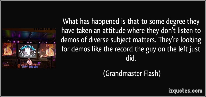 Joseph Saddler, better known as Grandmaster Flash, is an American hip hop recording artist and DJ. He is considered to be one of the pioneers of hip-hop DJing, cutting, and mixing. Grandmaster Flash and the Furious Five were inducted into the Rock and Roll Hall of Fame in 2007, becoming the first hip hop act to be so honored... (wikipedia)
