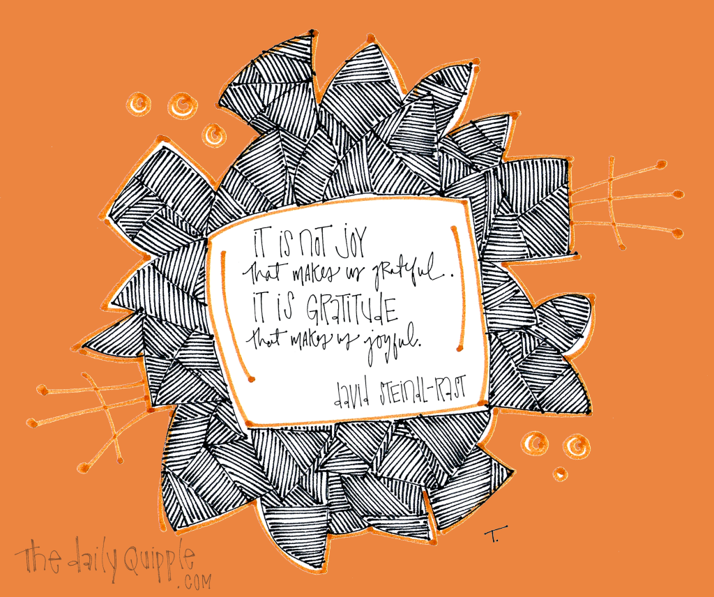 I try to be grateful for the abundance of the blessings that I have, for the journey that I'm on and to relish each day as a gift.