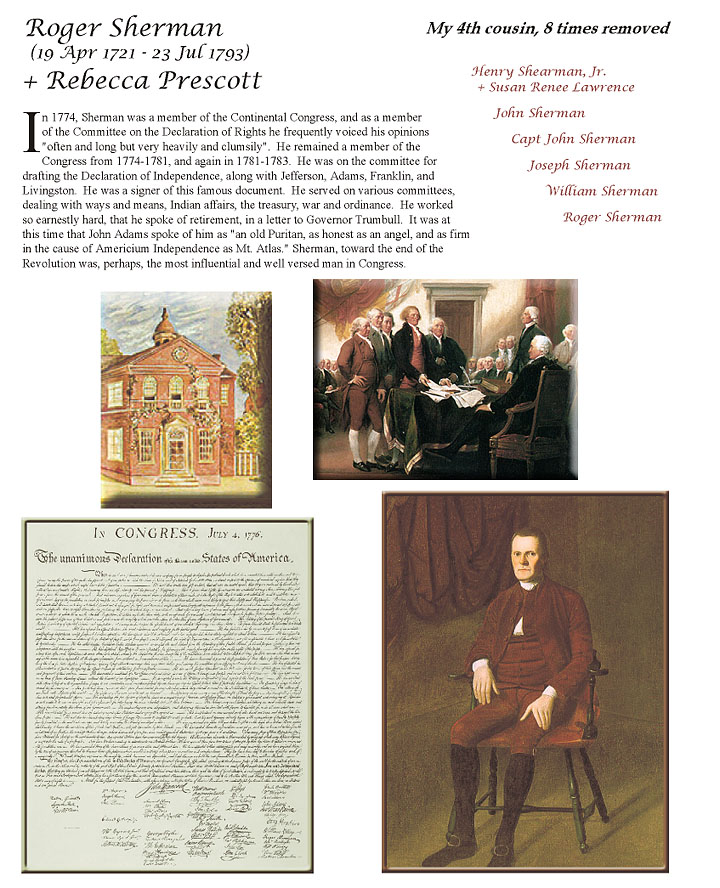 Roger Sherman was an early American lawyer and statesman, as well as a Founding Father of the United States. He served as the first mayor of New Haven, Connecticut, and served on the Committee of Five that drafted the Declaration of Independence, and was also a representative and senator in the new republic. He was the only person to sign all four great state papers of the U.S.: the Continental Association; the Declaration of Independence; the Articles of Confederation, and; the Constitution... (wikipedia)