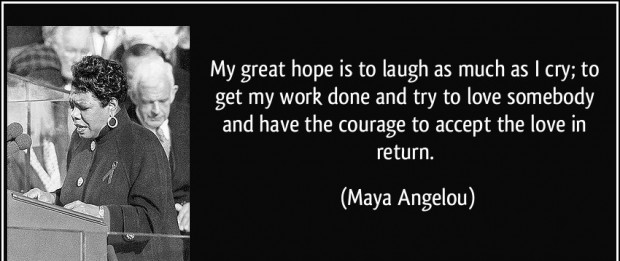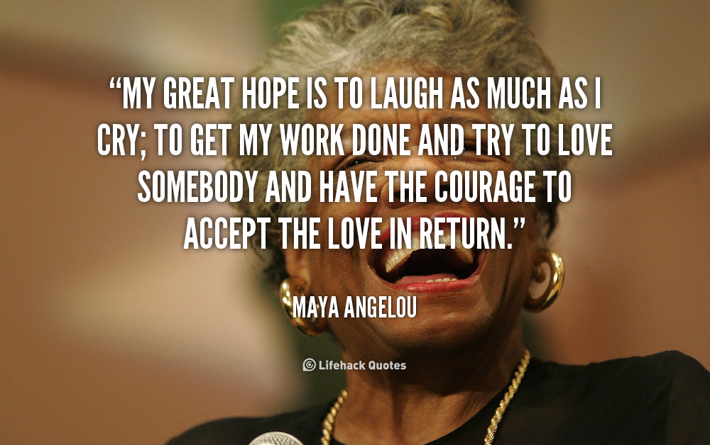 My great hope is to laugh as much as I cry; to get my work done and try to love somebody and have the courage to accept the love in return.