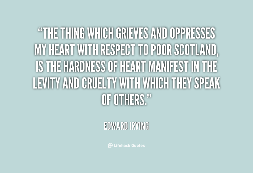 The thing which grieves and oppresses my heart with respect to poor Scotland, is the hardness of heart manifest in the levity and cruelty with which they speak of others.