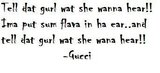 Honestly, if a girl's wearing, like, a Gucci shirt with a Gucci belt and a purse and a visor, that's not cute at all. You can't get away with that - with me - but you can always sprinkle it in there with your own stuff, and it's all good.