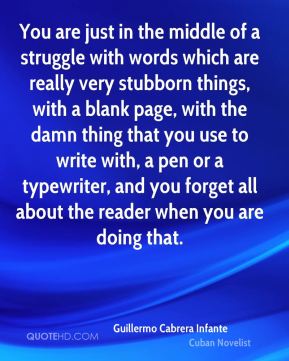 You are just in the middle of a struggle with words which are really very stubborn things, with a blank page, with the damn thing that you use to write with, a pen or a typewriter, and you forget all about the reader when you are doing that.
