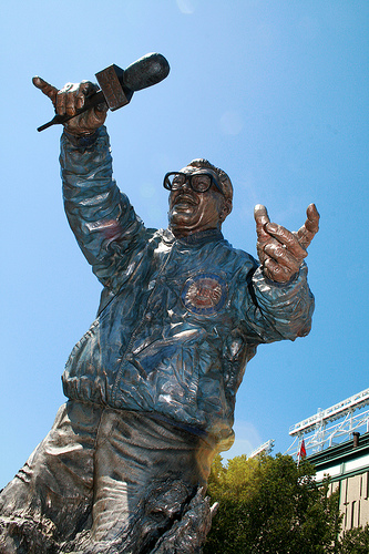 Harry Caray, born Harry Christopher Carabina was an American sportscaster on radio and television. He covered four Major League Baseball teams, beginning with 25 years of calling the games of the St. Louis Cardinals. After a year working for the Oakland Athletics and eleven years with the Chicago White Sox, Caray spent the last sixteen years of his career as the announcer for the Chicago Cubs. He has won multiple Emmy Awards for baseball play-by-play and studio work for NBC Sports... (wikipedia)
