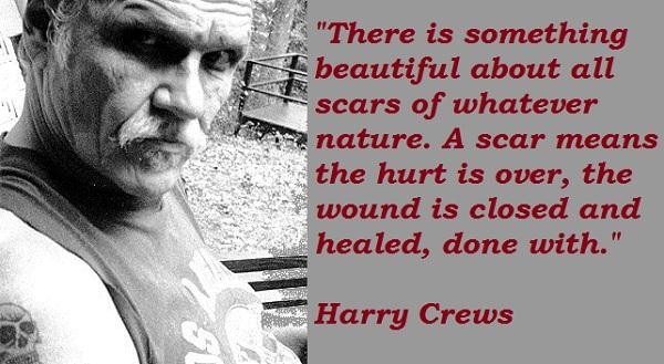 There is something beautiful about all scars of whatever nature. A scar means the hurt is over, the wound is closed and healed, done with.