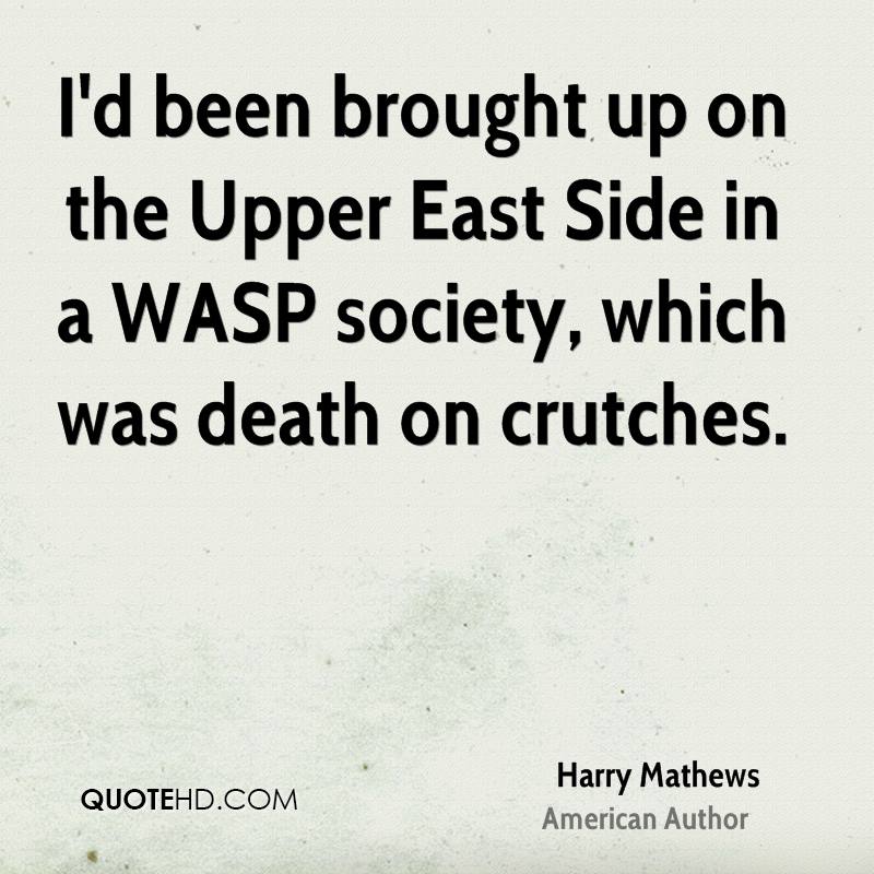 I'd been brought up on the Upper East Side in a WASP society, which was death on crutches.
