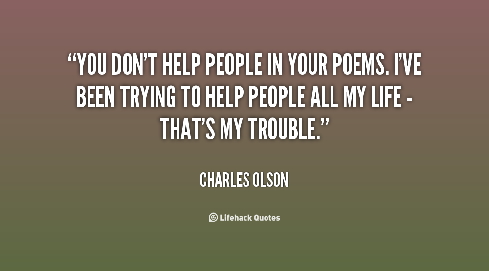 Sometimes you try to help people, and it backfires on you, and then they try to take advantage of you.