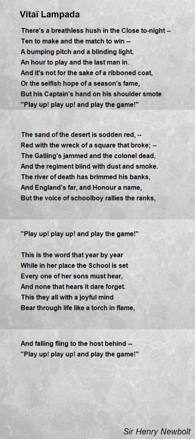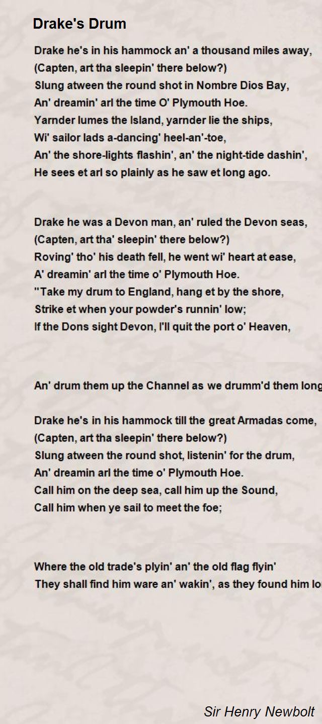 Sir Henry John Newbolt, CH was an English poet, novelist and historian. He also had a very powerful role as a government adviser, particularly on Irish issues and with regard to the study of English in England. He is perhaps best remembered for his poems "Vitaï Lampada" and "Drake's Drum"... (wikipedia)