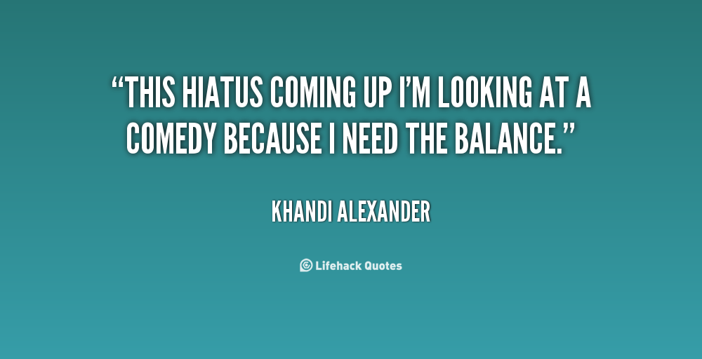 This hiatus coming up I'm looking at a comedy because I need the balance.