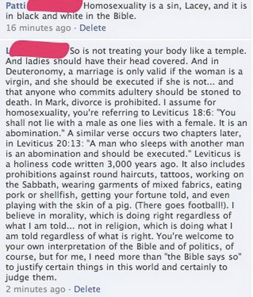The fact that a person loves one particular person is what is important; the life lesson, whether you are homosexual or heterosexual, is that you not be promiscuous, and true to one person.