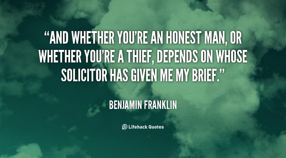 Me, I'm dishonest, and you can always trust a dishonest man to be dishonest. Honestly, it's the honest ones you have to watch out for.
