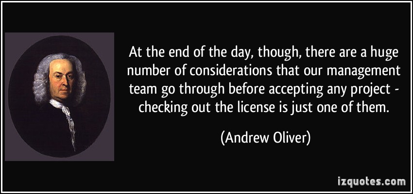 At the end of the day, though, there are a huge number of considerations that our management team go through before accepting any project - checking out the license is just one of them.