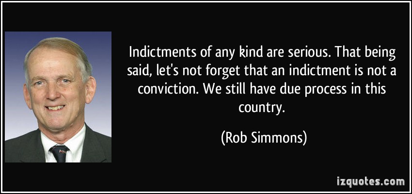 Indictments of any kind are serious. That being said, let's not forget that an indictment is not a conviction. We still have due process in this country.