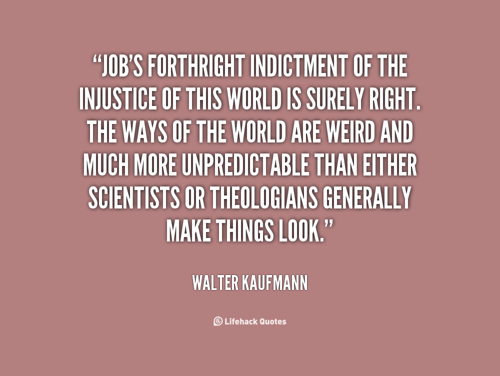 Job's forthright indictment of the injustice of this world is surely right. The ways of the world are weird and much more unpredictable than either scientists or theologians generally make things look.