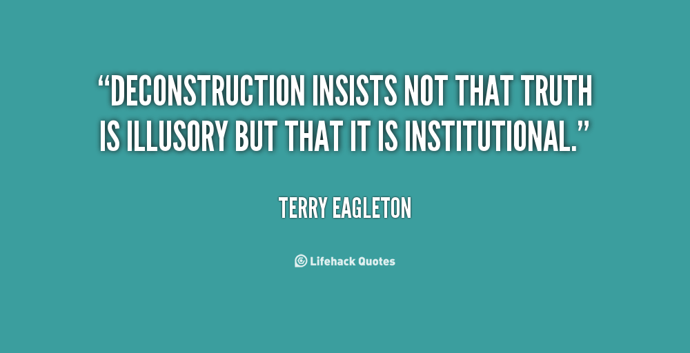 Deconstruction insists not that truth is illusory but that it is institutional.
