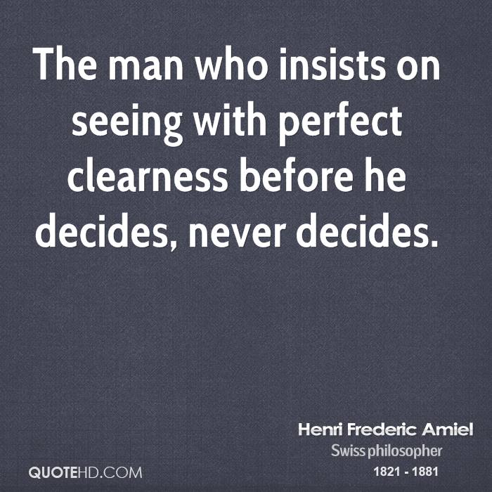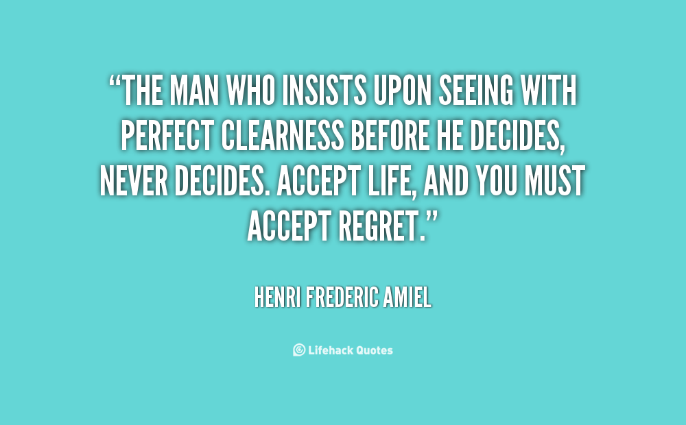The man who insists upon seeing with perfect clearness before he decides, never decides. Accept life, and you must accept regret.