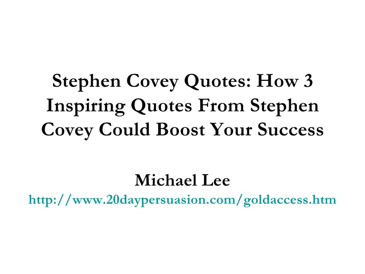 Stephen Richards Covey was an American educator, author, businessman, and keynote speaker. His most popular book was The Seven Habits of Highly Effective People. His other books include First Things First, Principle-Centered Leadership, The Seven Habits of Highly Effective Families, The 8th Habit, and The Leader In Me — How Schools and Parents Around the World Are Inspiring Greatness, One Child at a Time. He was a professor at the Jon M. Huntsman School of Business at Utah State University at the time of his death... (wikipedia)
