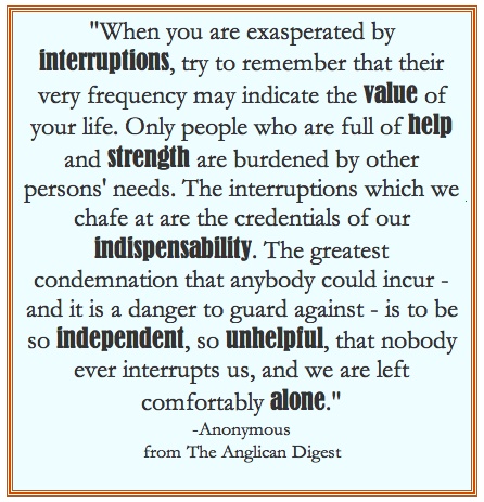 It's a fallacy that writers have to shut themselves up in their ivory towers to write. I have all these interruptions, three of which I gave birth to. If I was thrown for a loop every time I was distracted I could never get anything done.