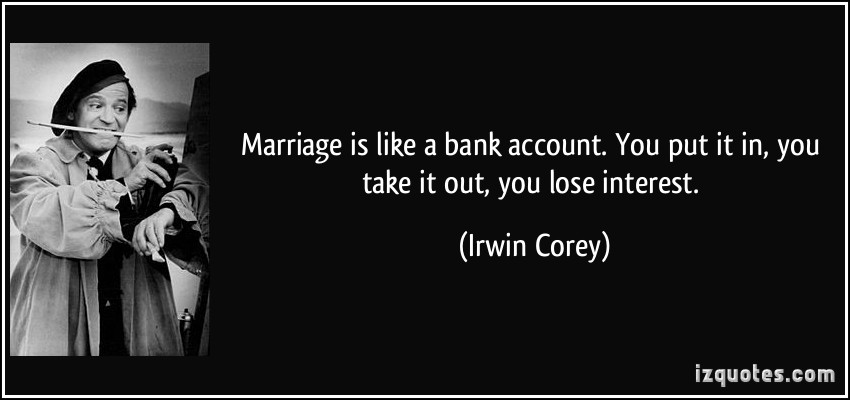 Marriage is like a bank account. You put it in, you take it out, you lose interest.